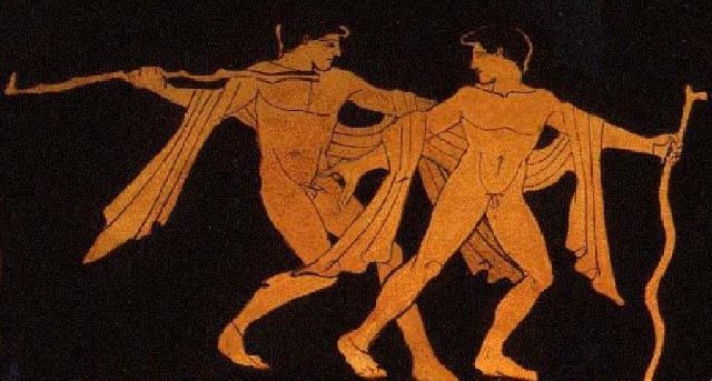 As the youth in the painting had a more than reasonable sized set of equipment, admittedly outdone by the gent fingering him, Moggo was gently pulling Gobbo’s pis..., no I mean leg.